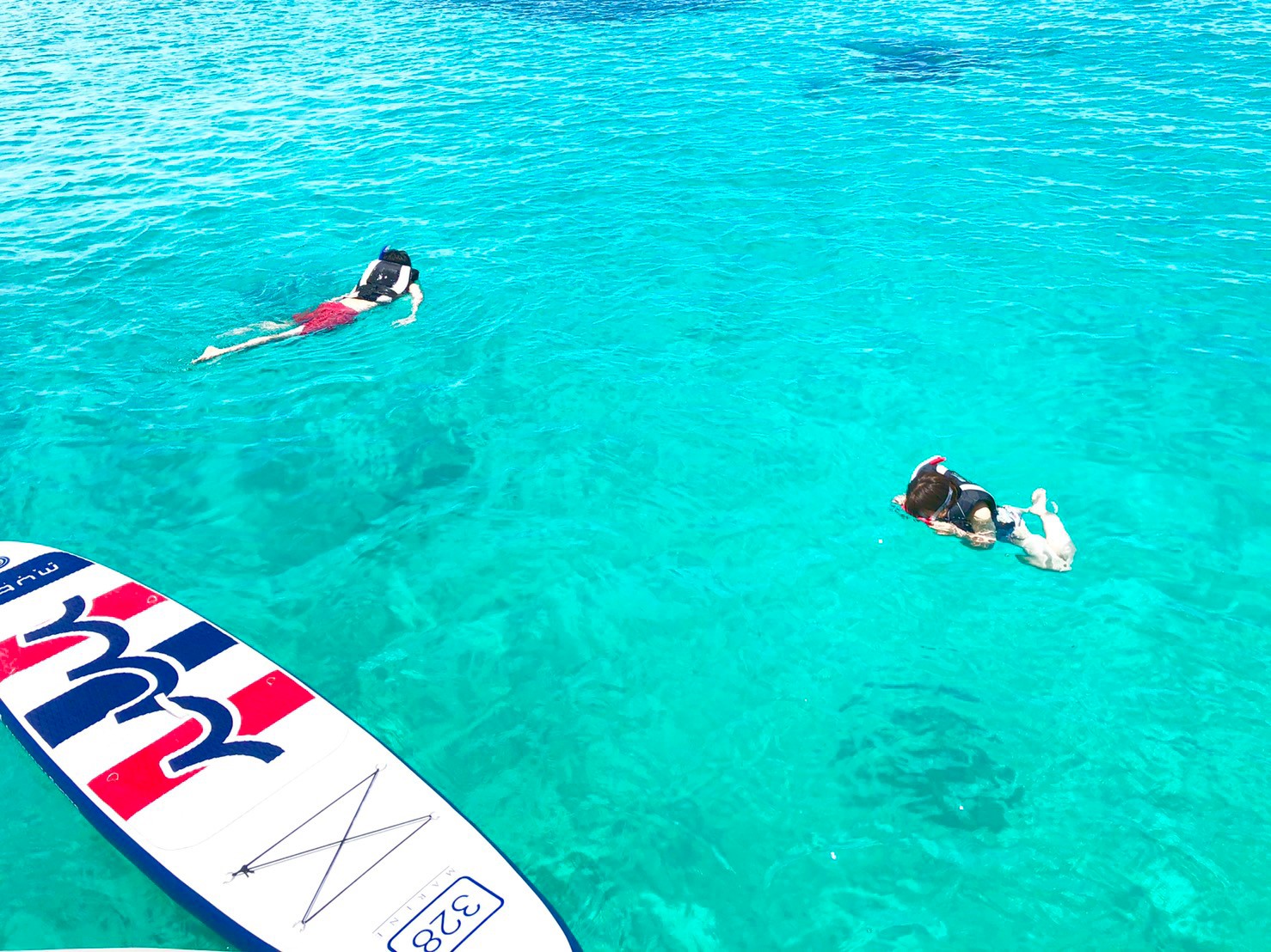 セーリングクルーズ後、津堅ビーチ沖でアンカリング、目の前の海はお客様のプライベート空間!シュノーケリングやSUPをお楽しみ下さい。