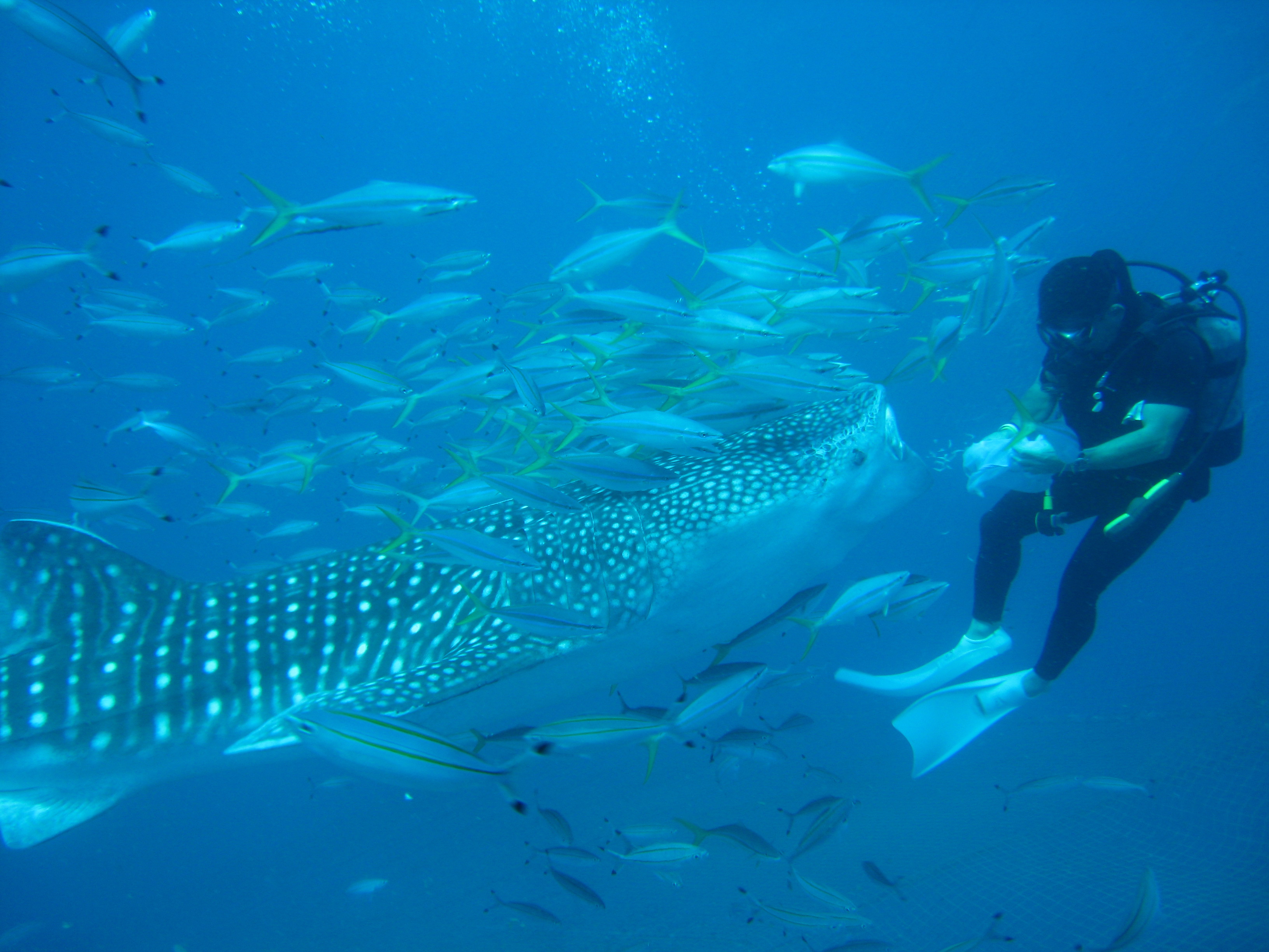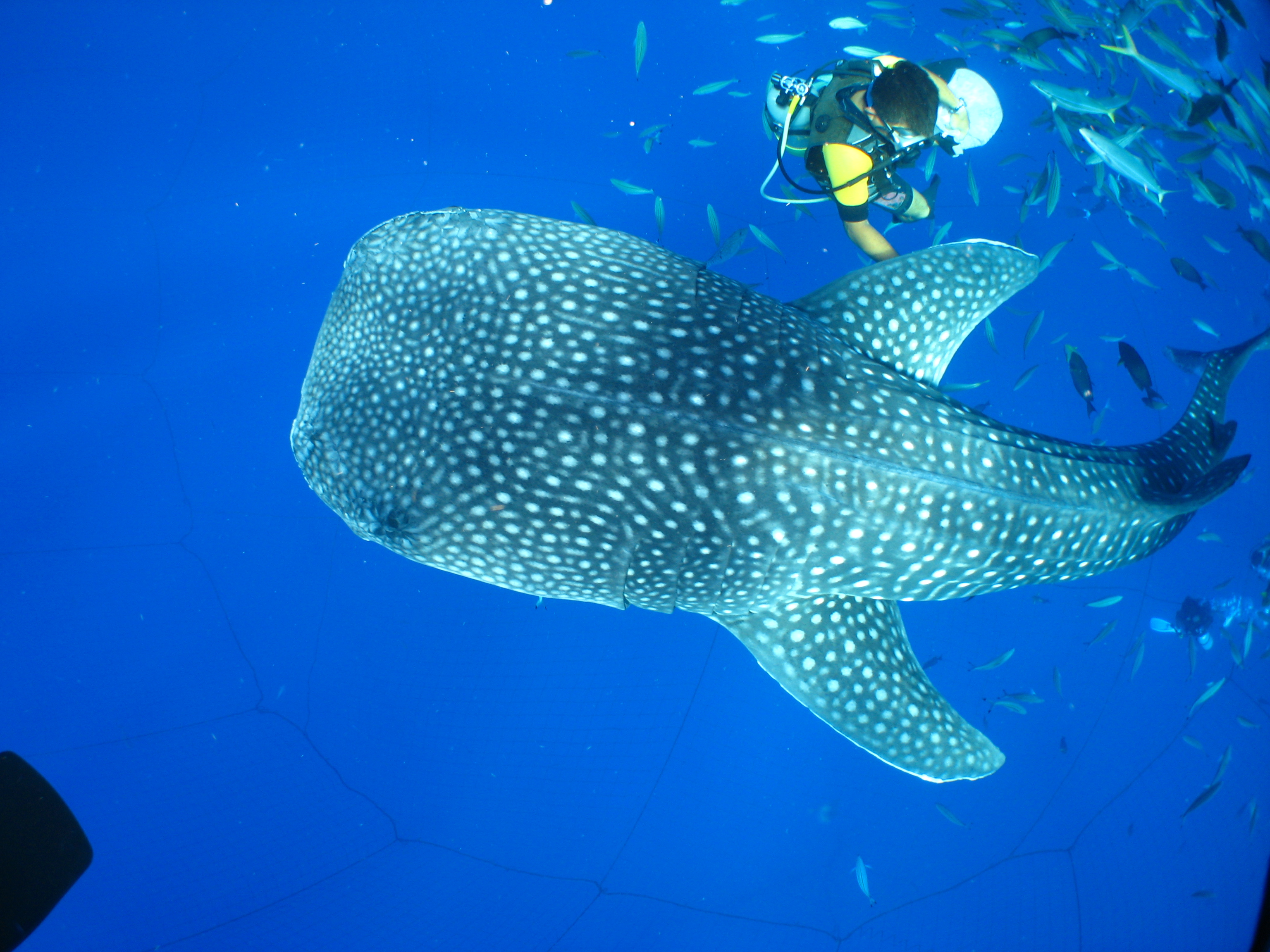 Whale Shark. The size of whale shark is more than 4m but good-natured and doesn`t hit anyone. The snorkeling tour will view from above the whale shark. The experience diving will swimming with whale shark very closely. The FUN diving will swimming with whale shark together.