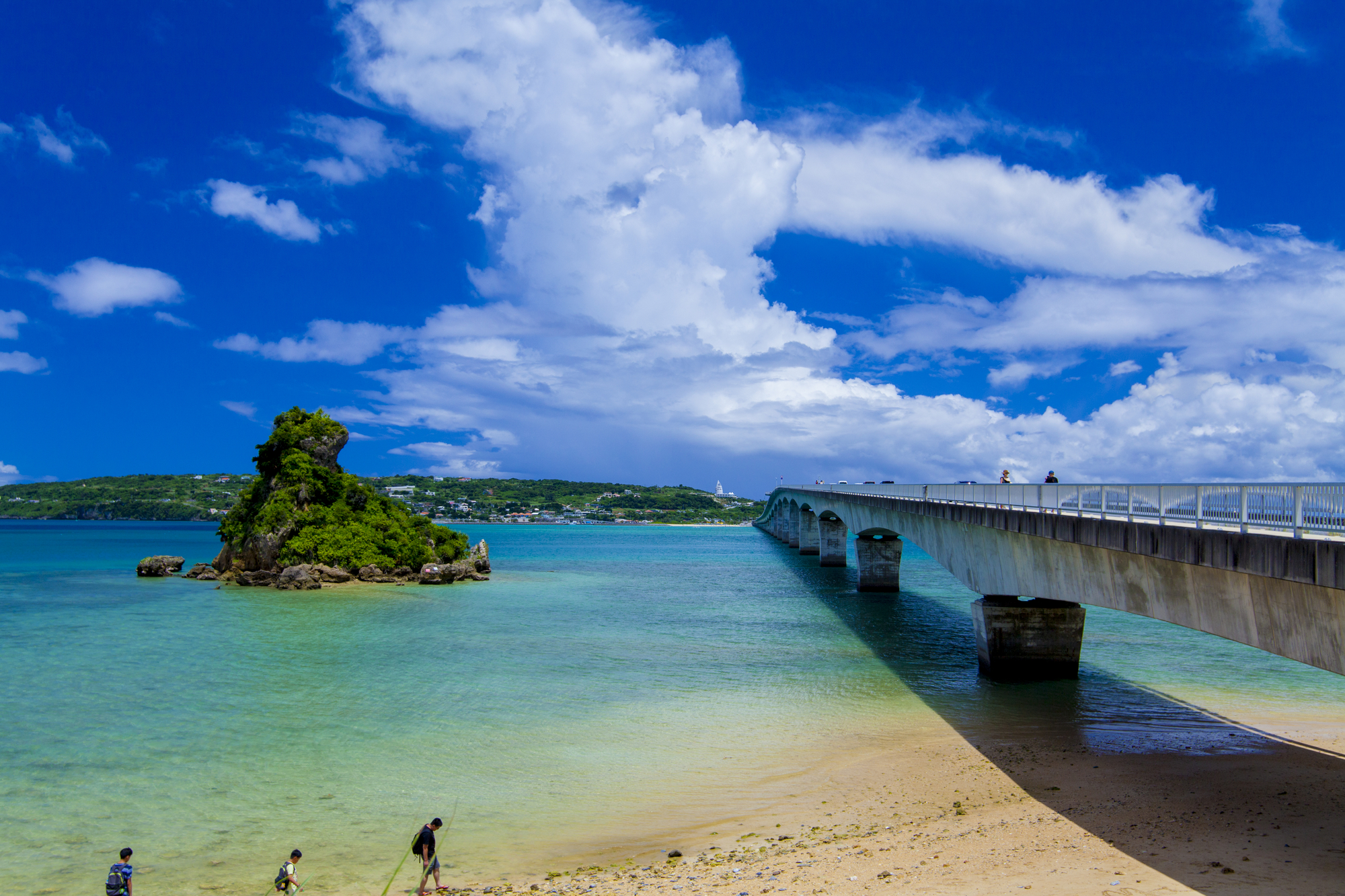 観光バスは、美ら海水族館、絶景で有名な古宇利島、映画のオープンセットのようなショッピングスポット「北谷アメリカンビレッジ」へ![]()