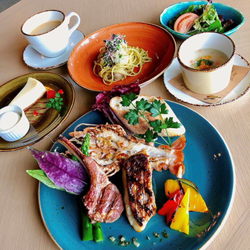 ・グリルプラッター季節の野菜添え~真鯛・手長エビ・ラムチョップ~