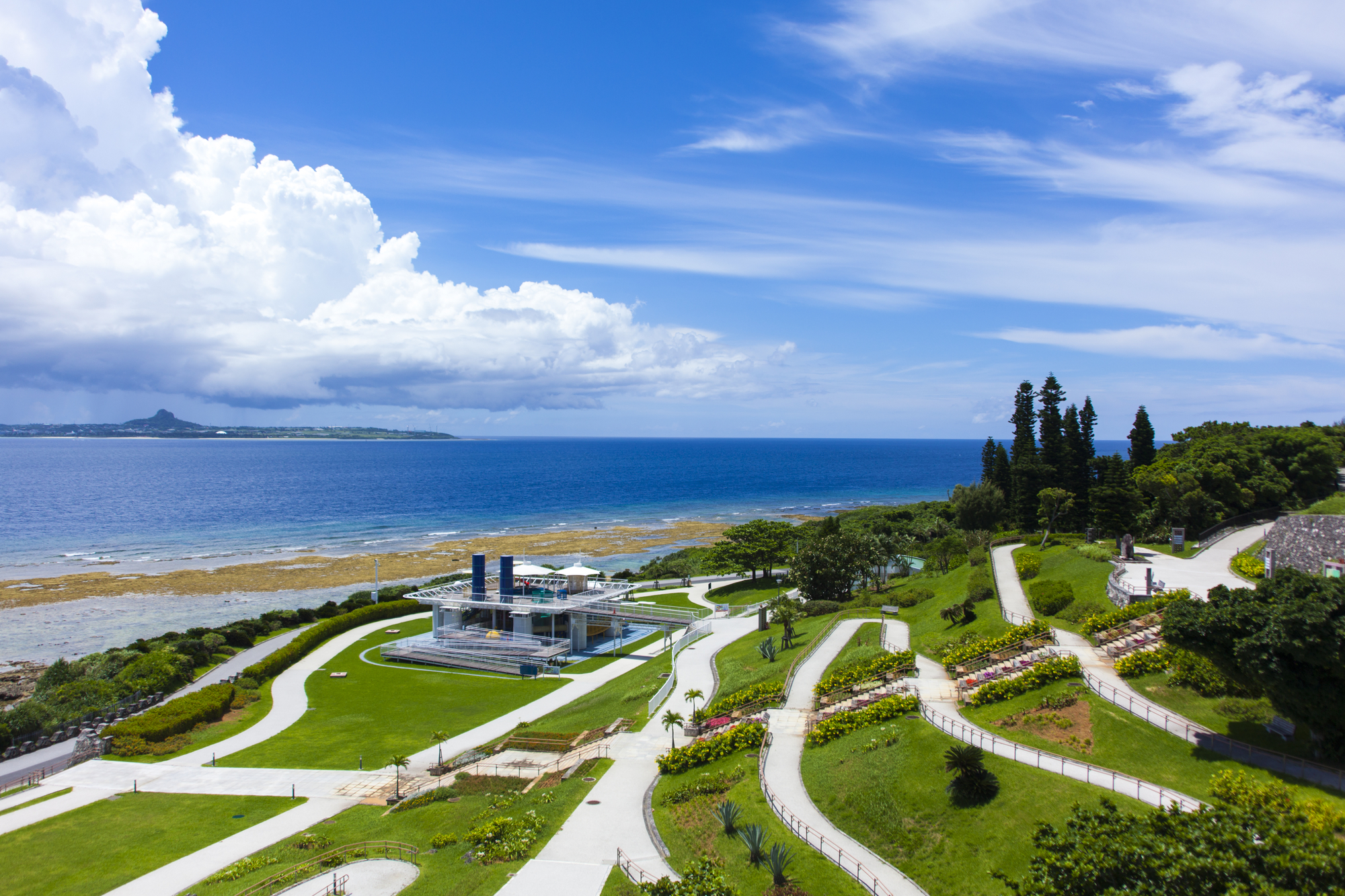 観光バスは、美ら海水族館、絶景で有名な古宇利島、映画のオープンセットのようなショッピングスポット「北谷アメリカンビレッジ」へ![]()