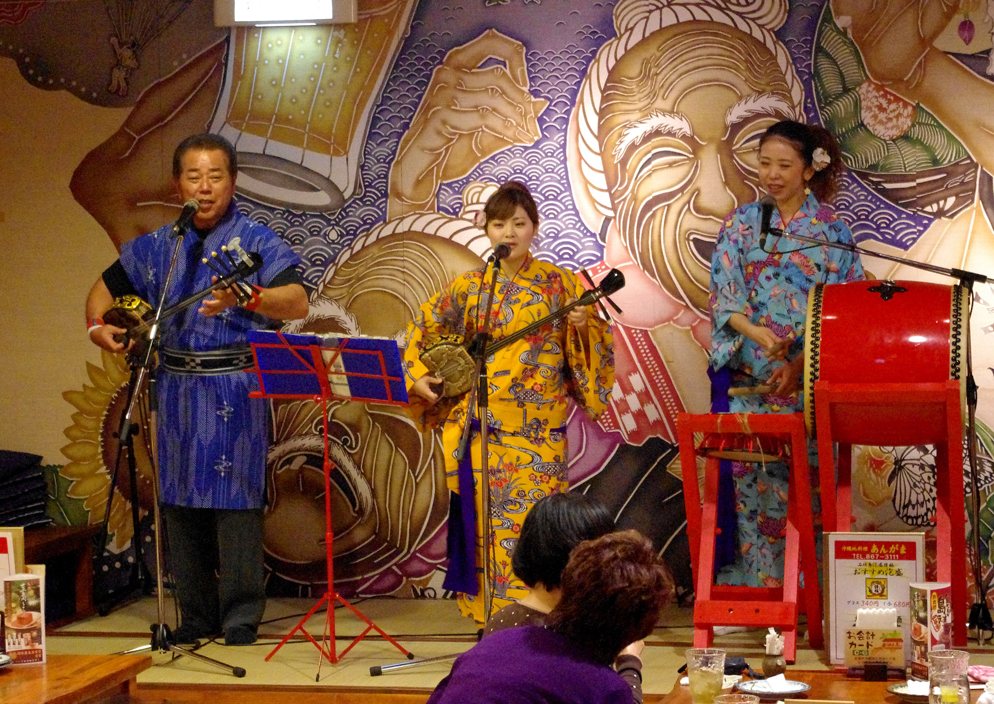 そして沖縄観光を満喫して頂いた後は、沖縄地料理の店「あんがま」もしくは「波照間」でお食事・島唄三線ライブをお楽しみください![]()