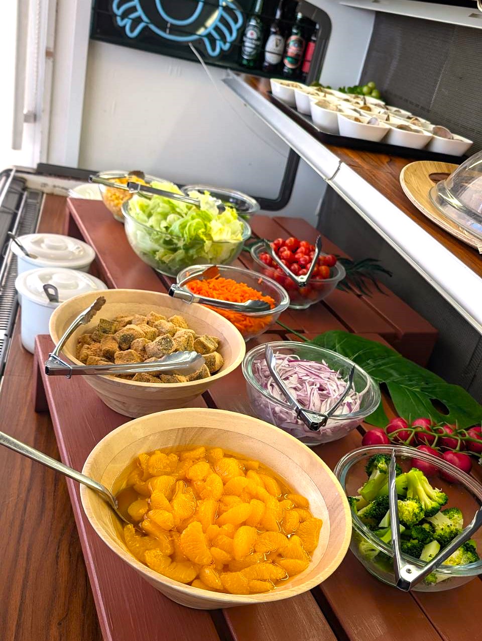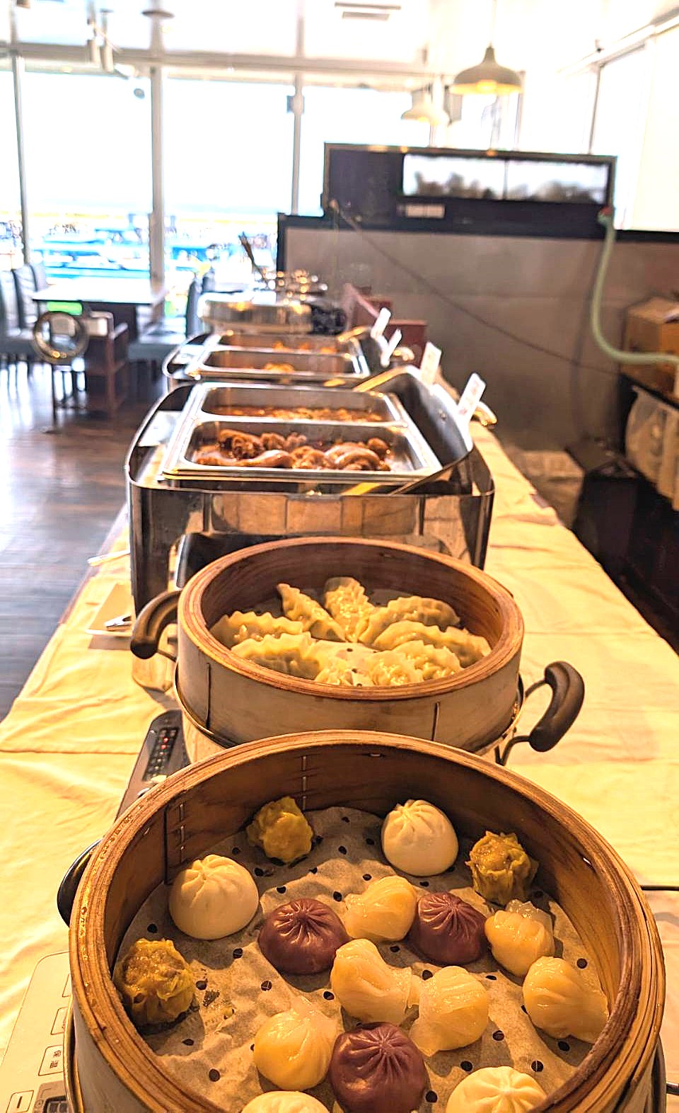 (ブッフェ)中華点心、ルーロー飯、麻婆豆腐、鶏肉のカレー煮、てびち、サラダバー、海鮮スープ、味噌汁、デザート、ソフトドリンク -