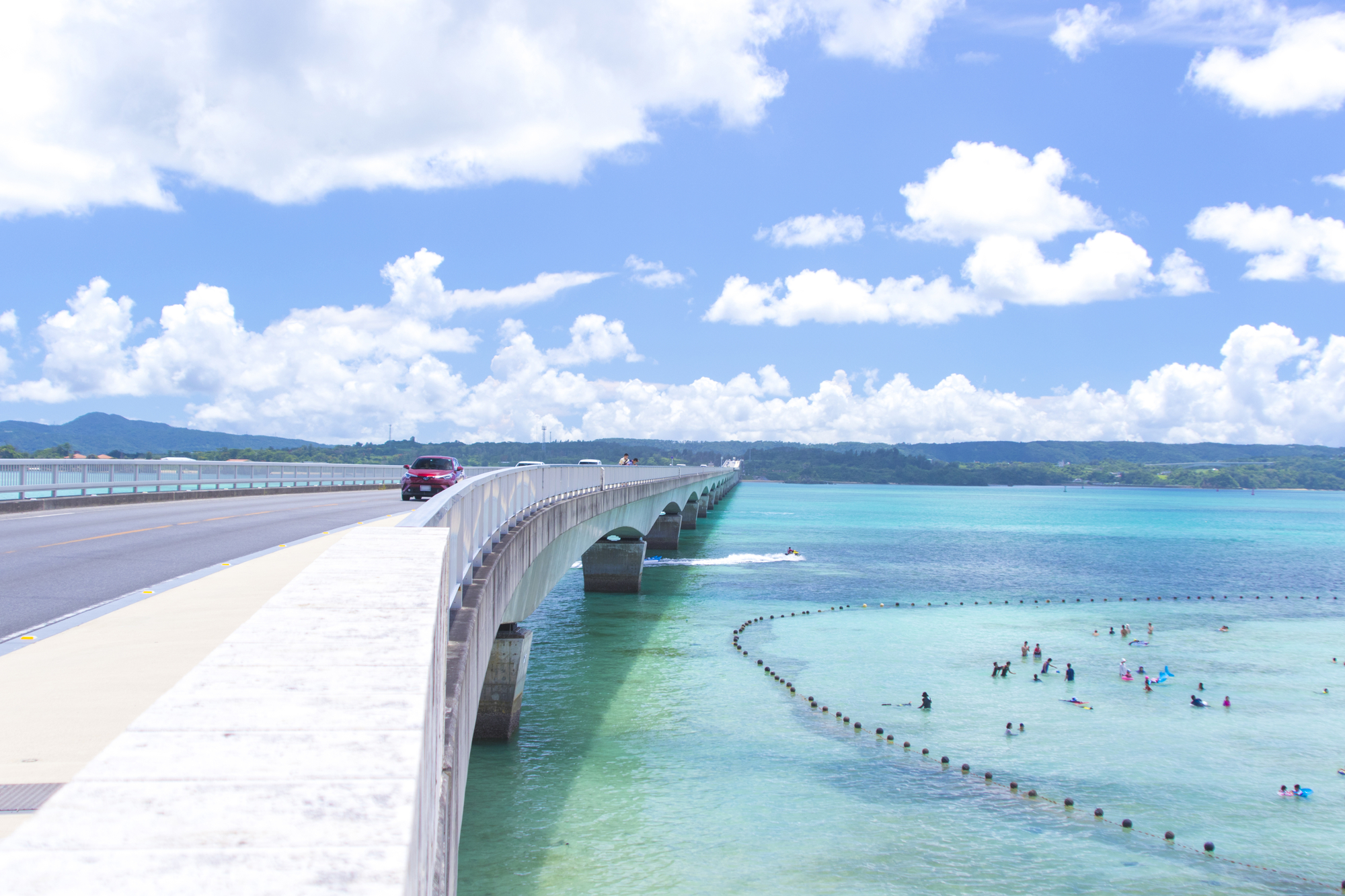 観光バスは、美ら海水族館、絶景で有名な古宇利島、映画のオープンセットのようなショッピングスポット「北谷アメリカンビレッジ」へ![]()