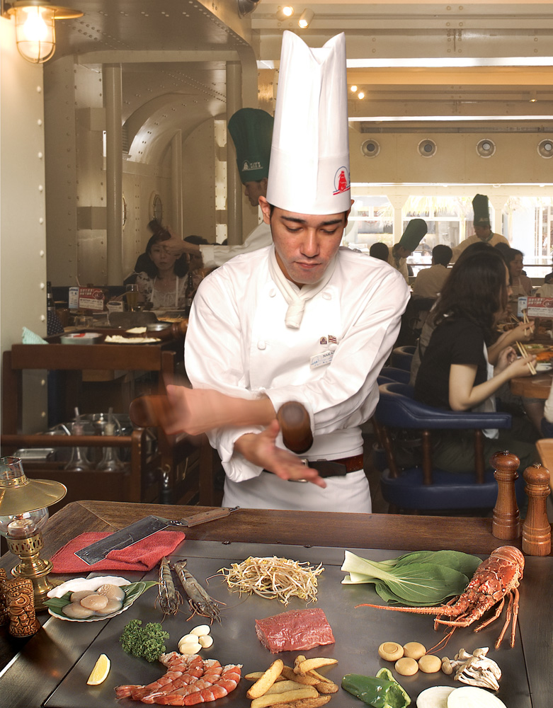 確かな腕のシェフが目の前でパフォーマンスをしながら焼きあげます!