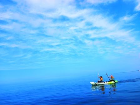 ※カヤックを漕ぐ時はウエットスーツを腰まで下げるため、上半身は日光にさらされます。