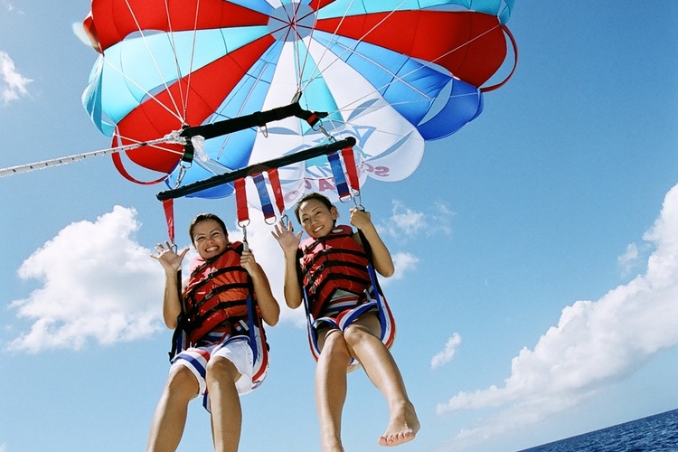 해양 스포츠 【북부출발】 츄라우미 수족관 근처, 세소코비치에서 즐기는 패러세일링¥7,000