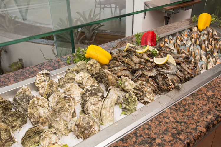 메인: 새우, 굴, 셰프 추천 신선 씨푸드, 오징어, 톱 서로인(채끝살), 소시지, 치킨, 돼지 등갈비 외