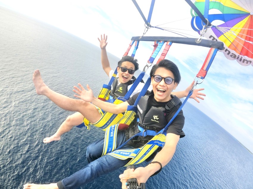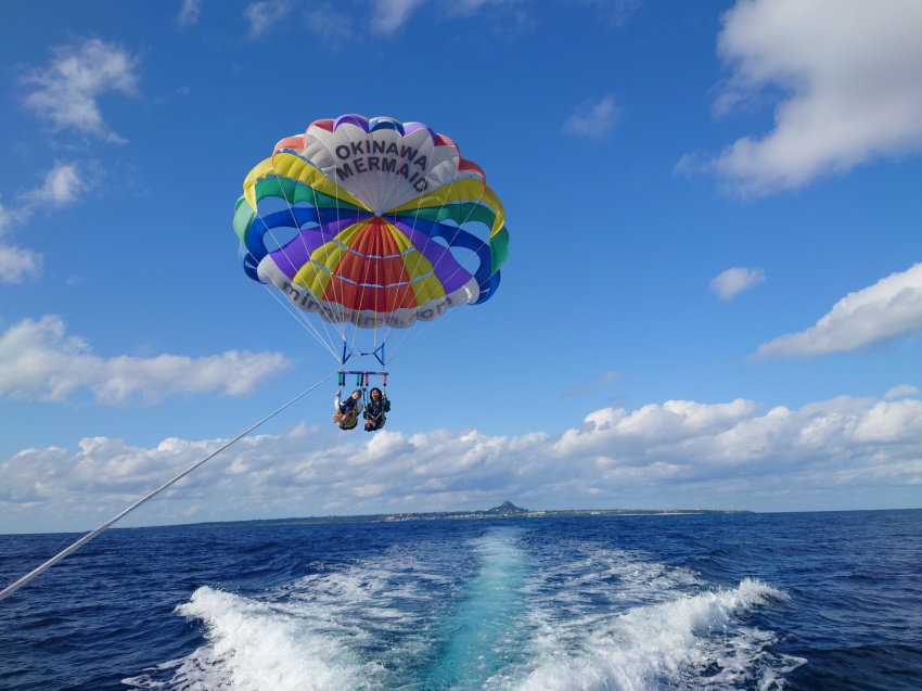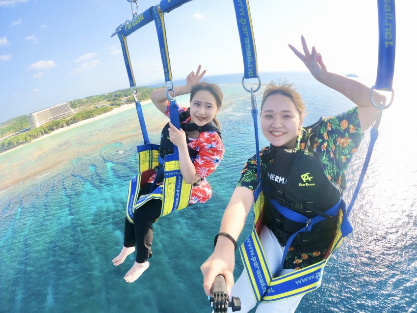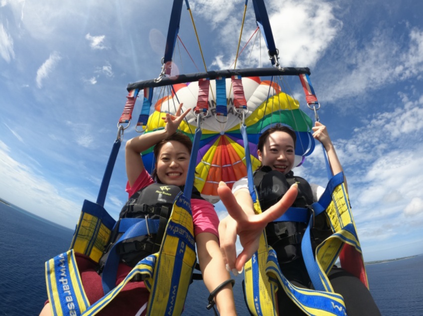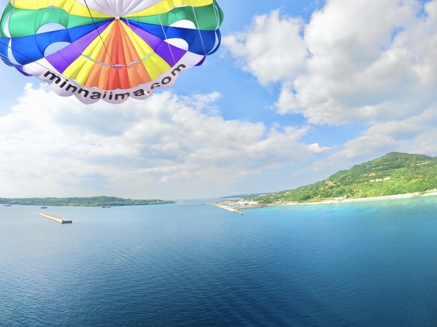 沖縄の海を地上40~50メートルから望めるパラセーリング![]()