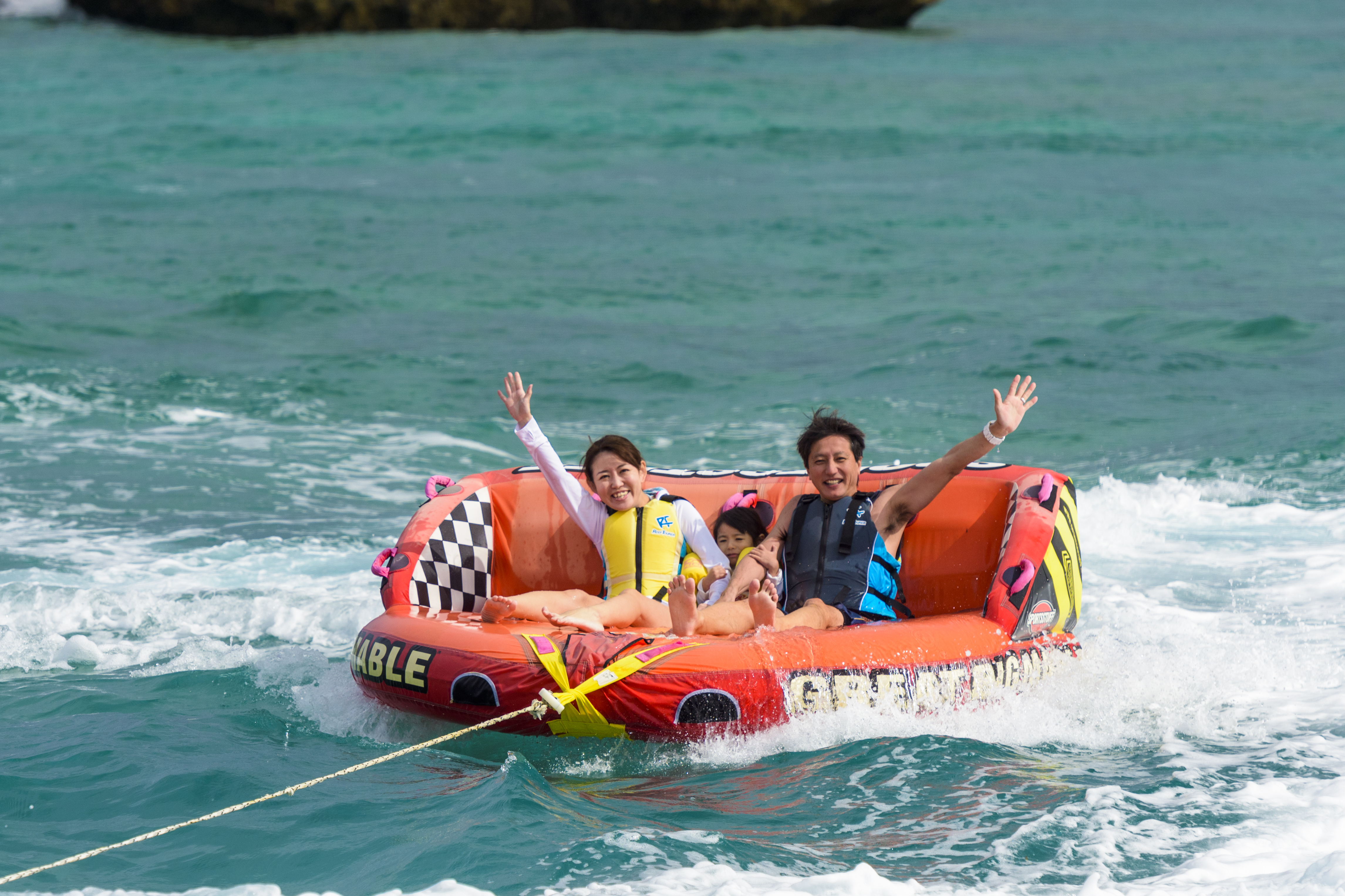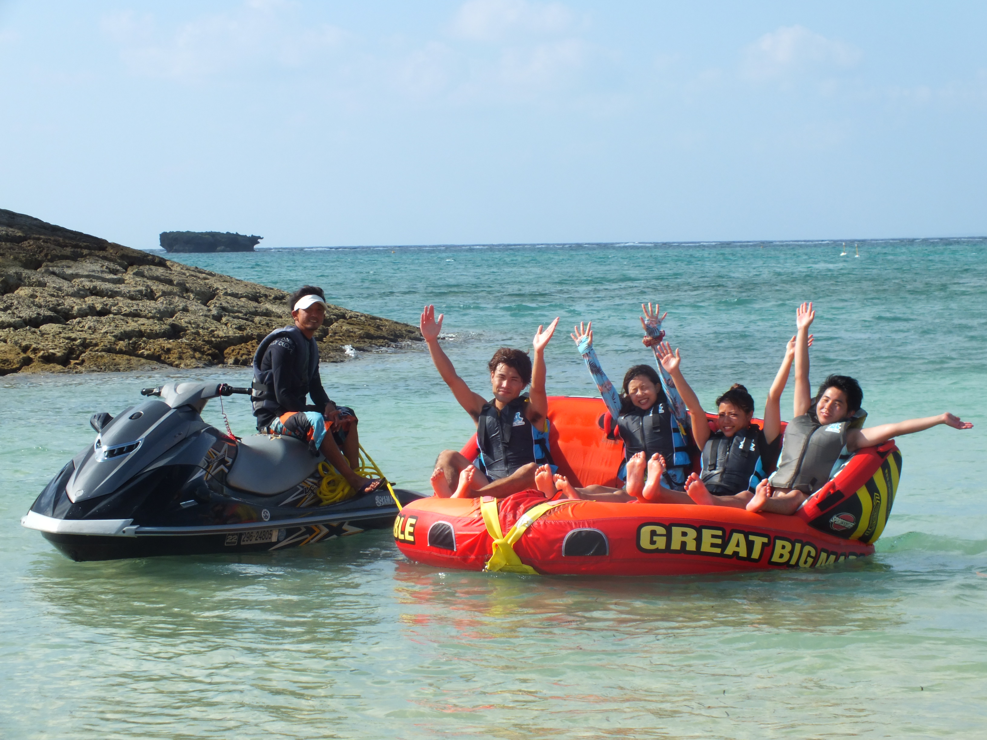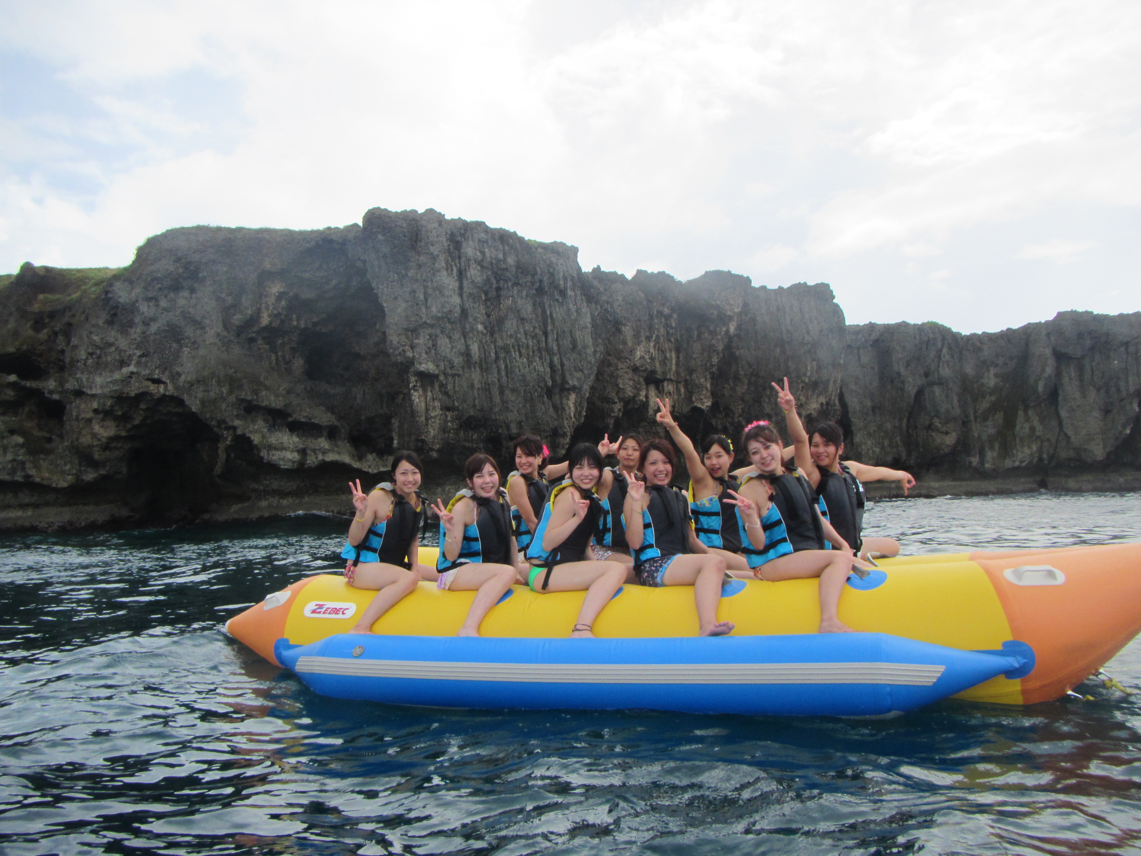 景勝地で有名な「万座毛」を下から眺めるバナナボートorビッグマーブル![]()