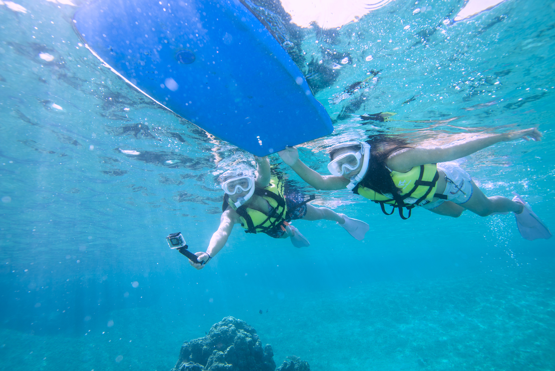 担当ガイドがビート板を持っているので、泳ぐのが