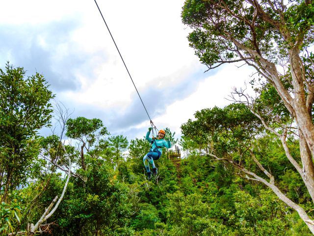 【沖縄本島北部東村(ひがしそん)】やんばるジップラインアドベンチャー全5種のターザン体験★空から見下ろそう!!やんばるの森★ガイド付き・80~140mの5種類全部の体験が可能♪¥5500