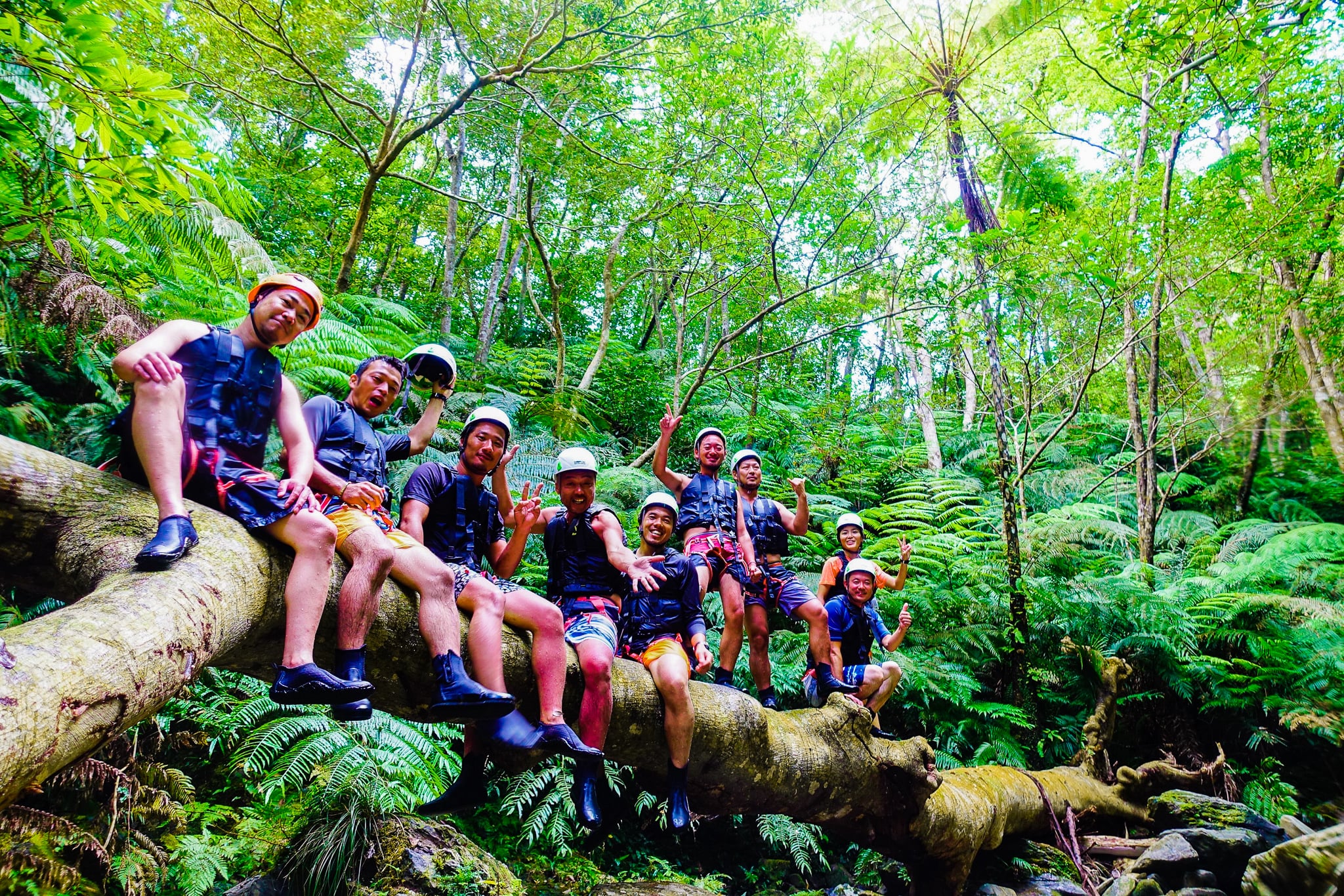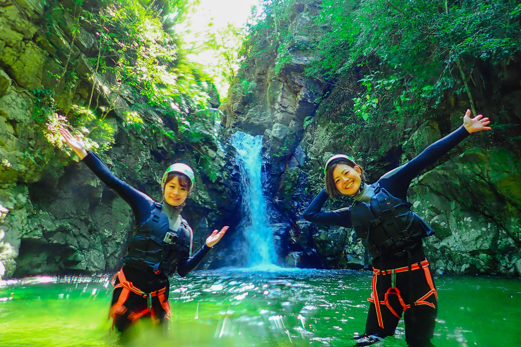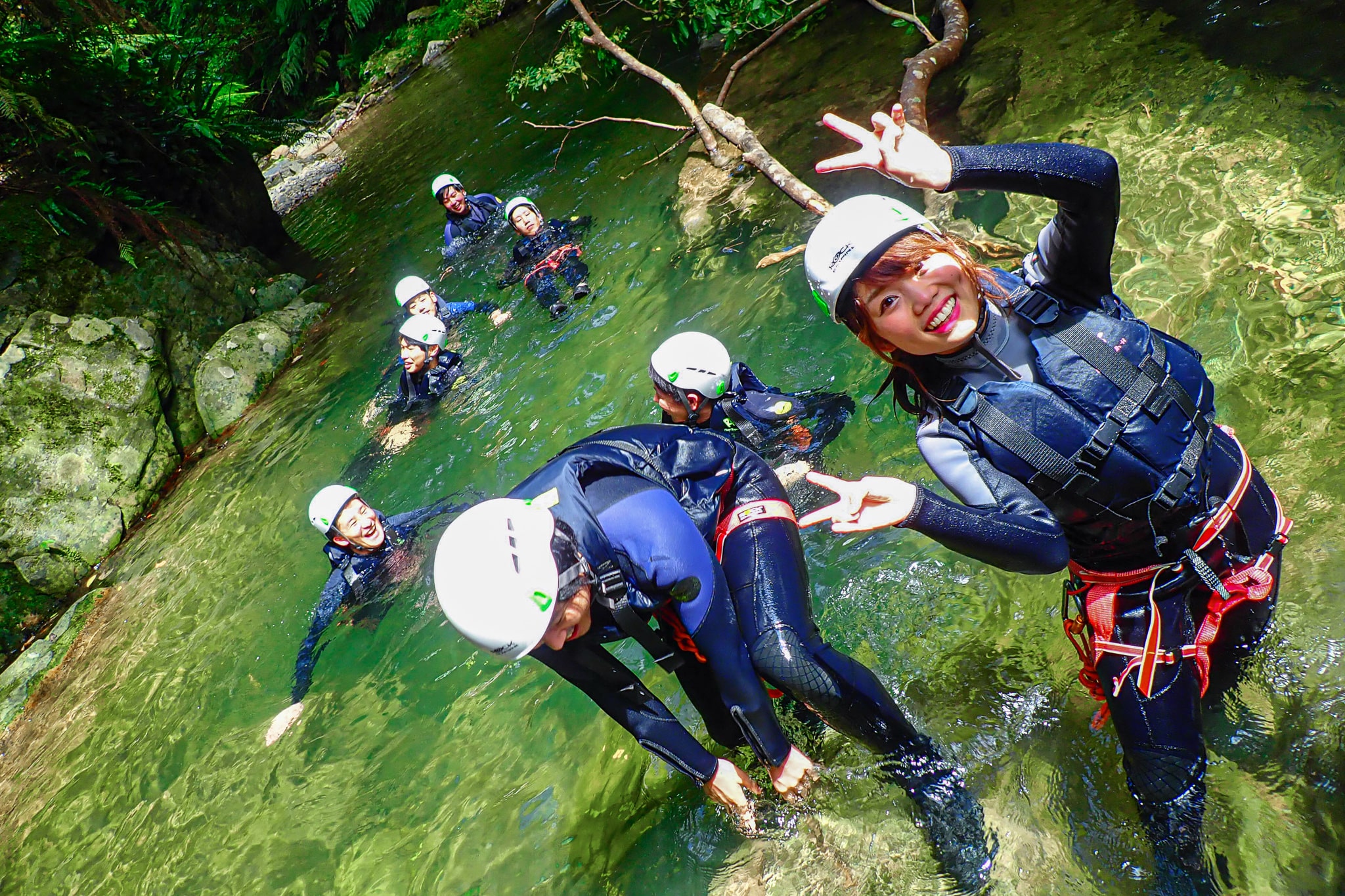 やんばるの秘境でのシャワークライミングツアーをお楽しみ下さい。思いっきり遊びます!ツアー中の記念撮影も沢山行います。