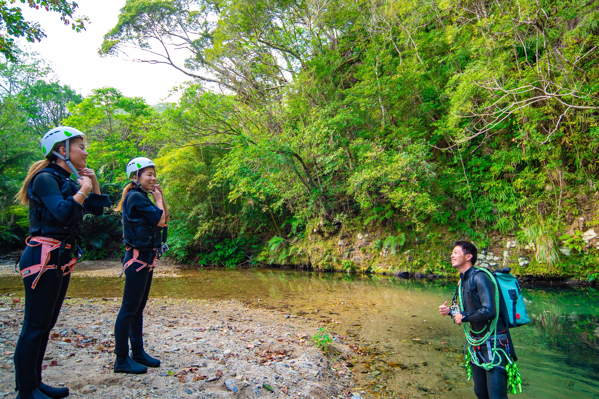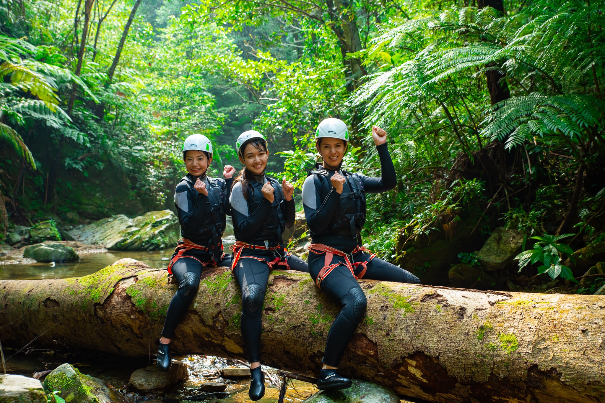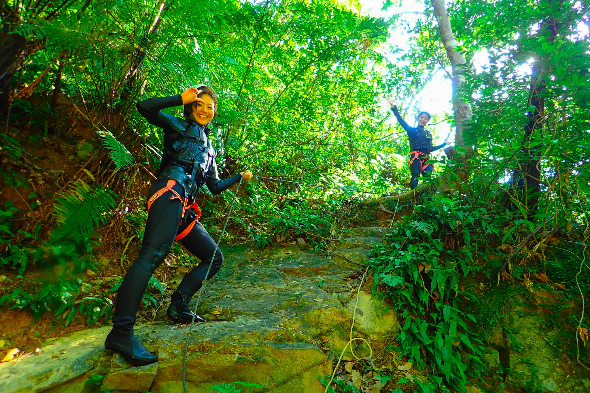 やんばるの秘境でのシャワークライミングツアーをお楽しみ下さい。思いっきり遊びます!ツアー中の記念撮影も沢山行います。