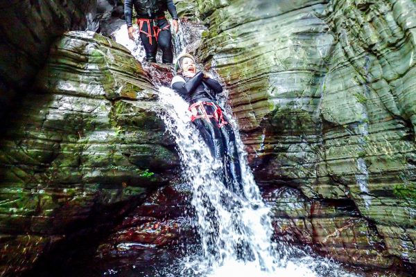 滝登りや崖上りを超えて感動のゴールへ。