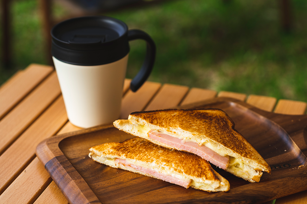 海を眺めながら味わうホットサンド、コーヒーは格別