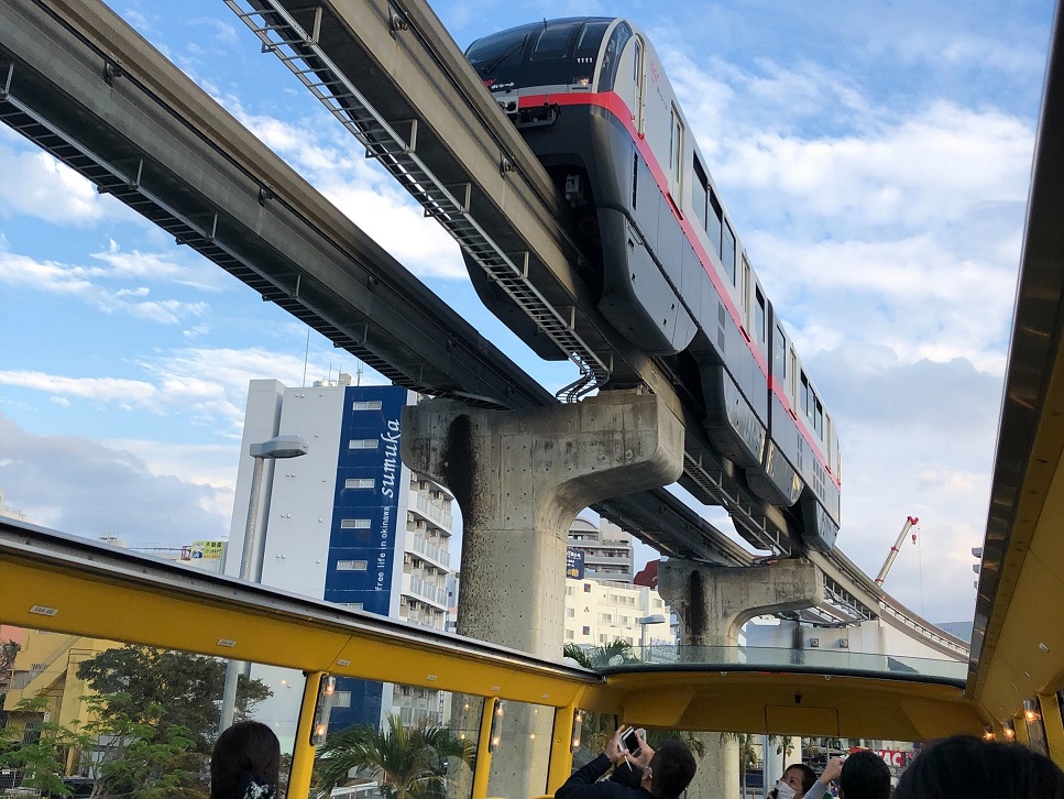 ~車窓をお楽しみください:ウミカジテラスがある「瀬長島」一周→全国でも有数の利用者数を誇る「那覇空港」→奇跡の1マイルと呼ばれ、600以上の店舗がありデパート・レストラン・雑貨店・お土産屋・ディープなショップなどの観光客を対象とした多くの店でにぎわう「国際通り」~