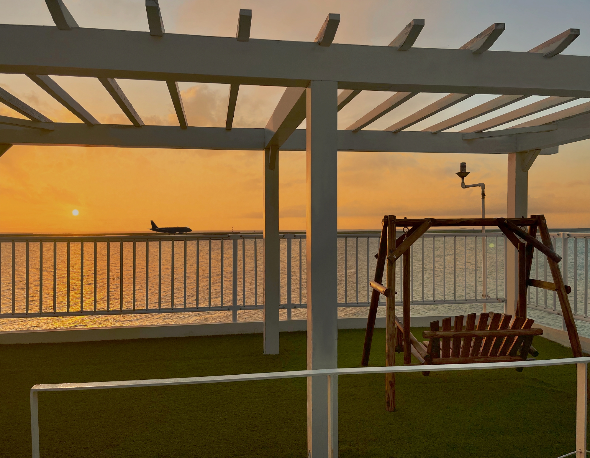 空港が近いためフライト中の飛行機を間近に見ることもでき、サンセット