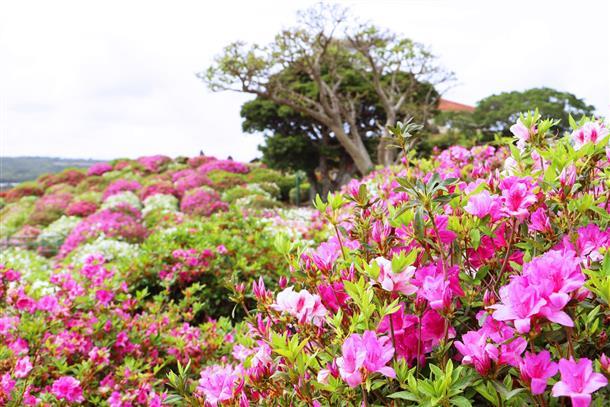 【3/7・3/11・3/14・3/15・3/22】\東村つつじ祭り入場券付き&いちご狩り40分食べ放題♪/お昼はカヌチャベイリゾート広東名菜「龍宮」特製ランチ・中華デザートバイキング★つつじAコース★日帰りバスツアー