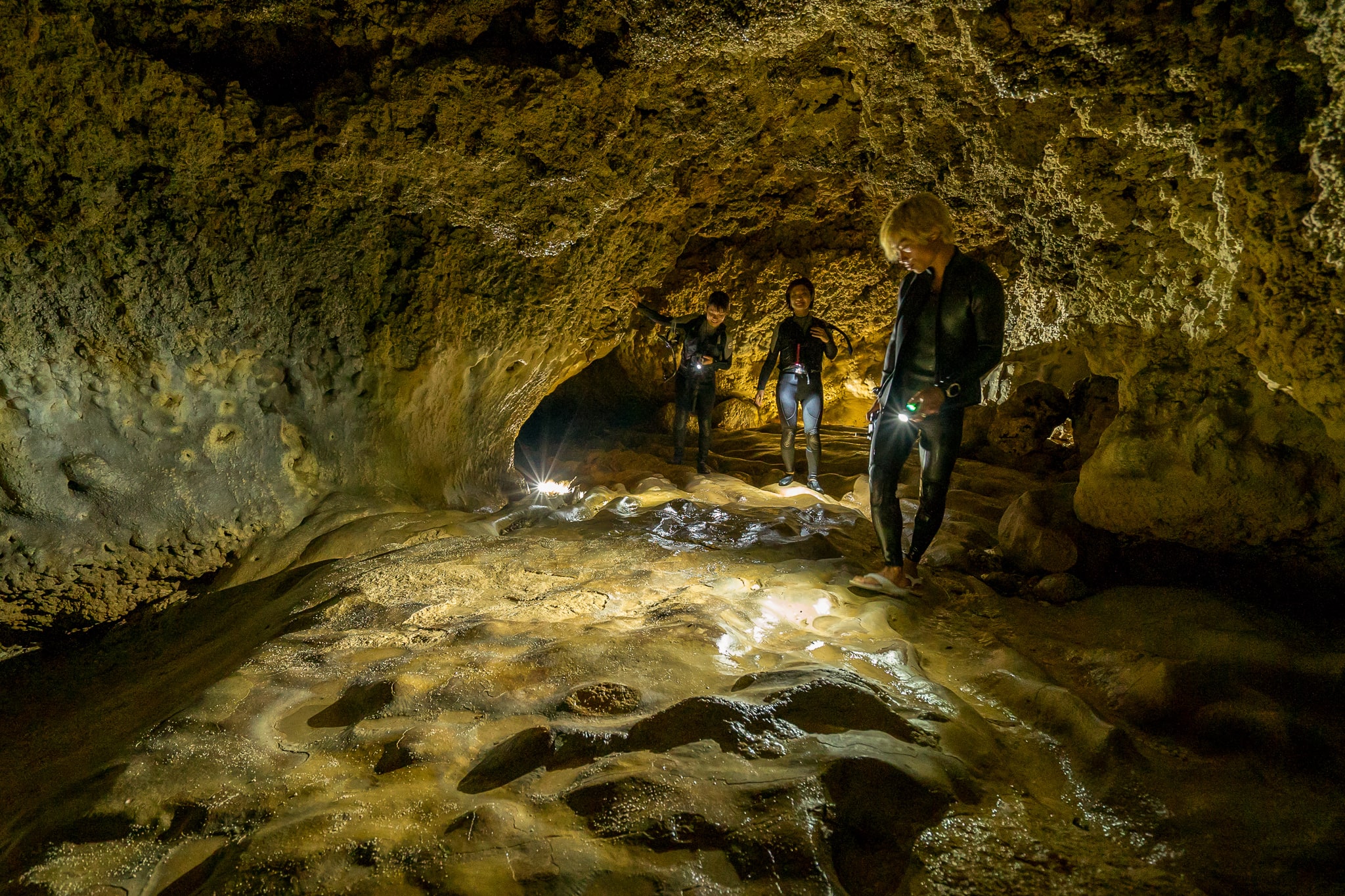 複数の洞窟をワクワクしながらライトを持ち、冒険家になった気分で生物探しをしながら探検