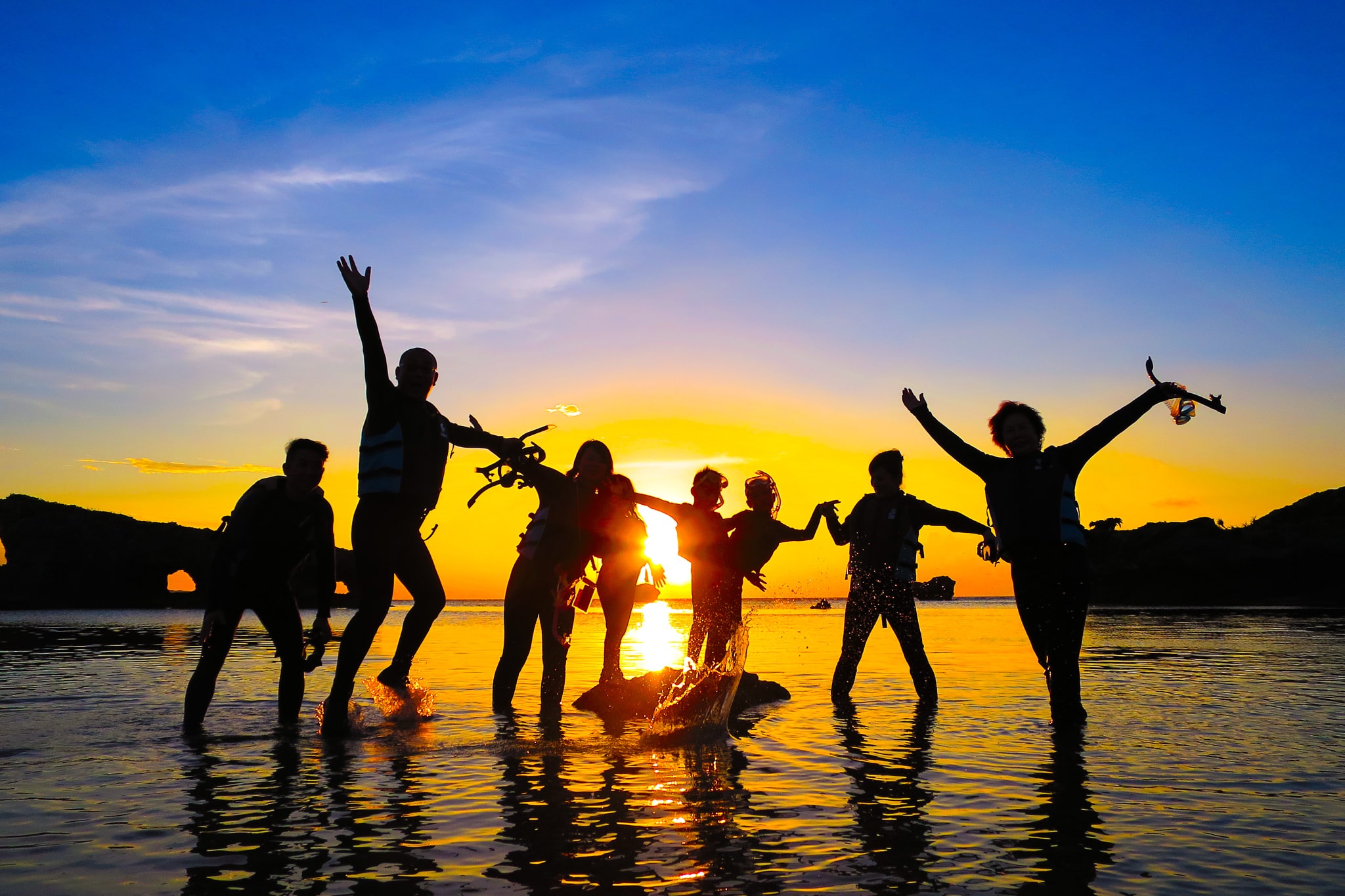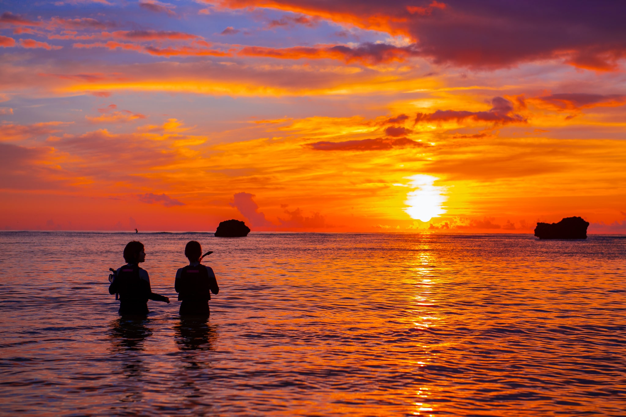 ~沖縄の天然ビーチで水平線に沈む夕陽を眺め、洞窟探検、夜の海の観察、輝く夜光虫&星空をお楽しみ頂きます~