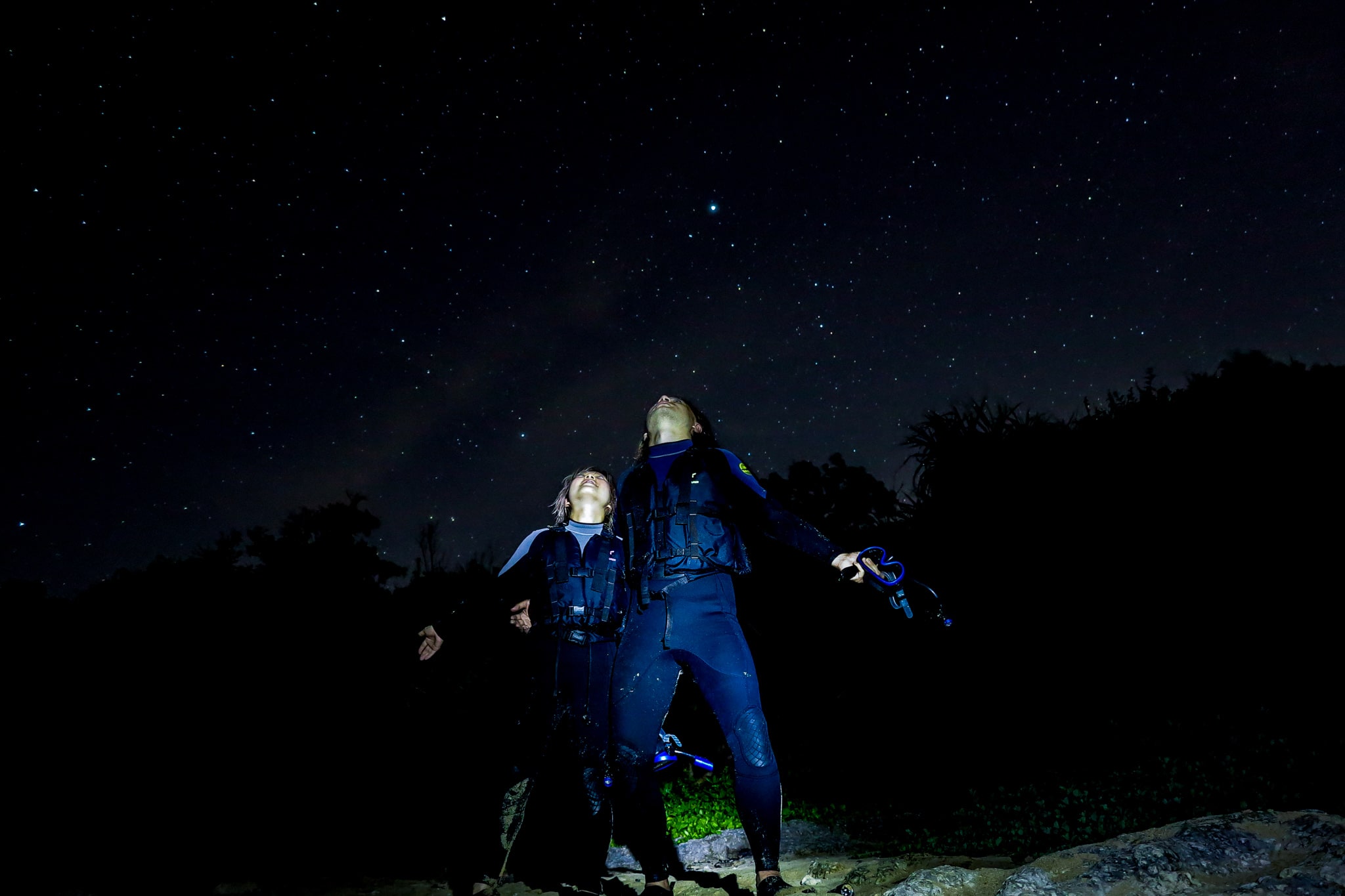 【恩納村発】夜光虫&星空ナイトシュノーケルプラン~ サンセットを眺め、洞窟を探検。星空の下で輝く夜の海を満喫!写真・動画撮影サービス付♪1組6名以上参加時1名¥3,480~1組1名参加時1名¥6,800