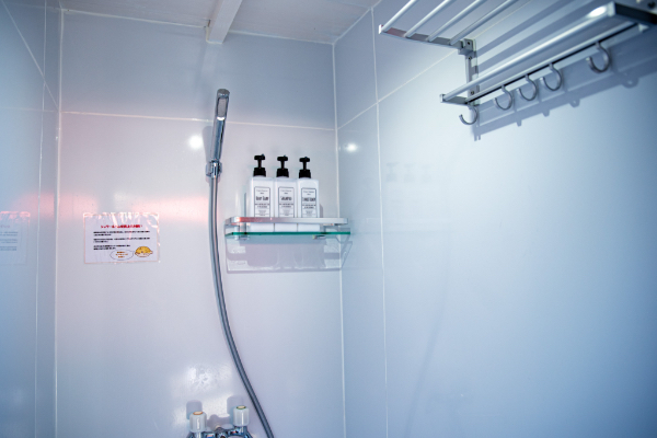 ~店舗内のシャワー、更衣室、パウダールームをご利用下さい。シャンプー、コンディショナー、ボディソープ、化粧水、乳液、ドライヤー全て無料でご利用頂けます~