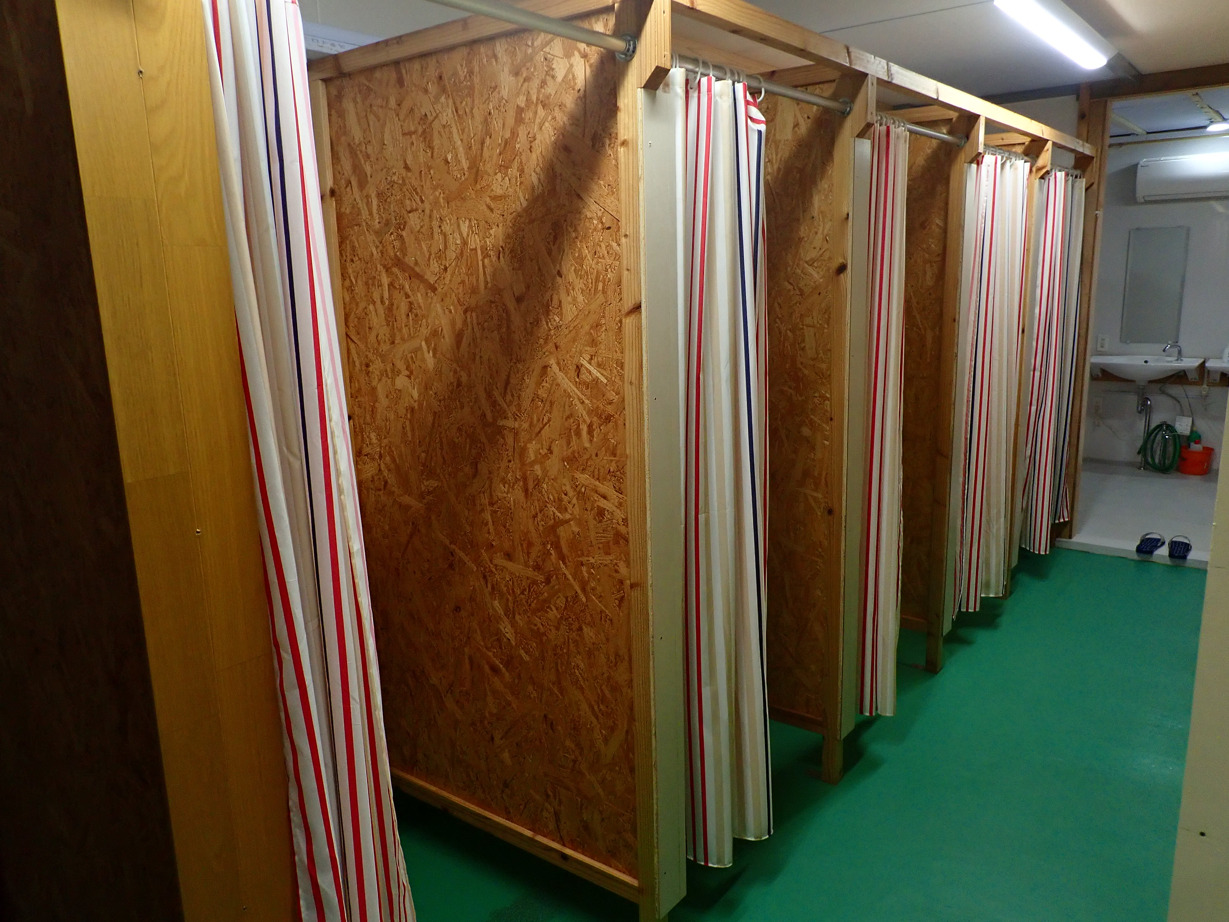 シャワー、更衣室、鍵付きロッカー、駐車場、トイレ、冷房を完備